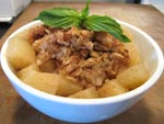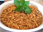 fresh apples, apple juice, baked with gluten-free oats & almonds, berries can be added, sweetened with light agave or other types of sweetener upon request