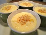 mangoes, pineapple juice, brown rice syrup, agar, kuzu blended with rice milk, topped with sliced orange & toasted coconut