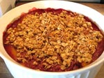 peaches, raspberries, apple juice, baked with gluten-free oats, sweetened with light agave or other types of sweetener upon request