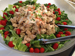 chicken breast, mayo, scallions, romaine, tomatoes, sea salt & black pepper, good selection for brunch or lunch