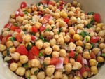 chickpeas, tomatoes, red onions, garlic, jalapenos, scallions, cilantro, extra-virgin olive oil, fresh squeezed lime juice, sea salt & black pepper
