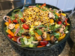 fresh grilled corn off the cob, bell peppers, mushrooms, tomatoes, red onions drizzled with extra-virgin olive, sea salt, black pepper garnished with fresh basil