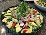 crabmeat, avocado, romaine, tomatoes, green beans, radish, drizzled with lemon vinaigrette, garnished with fresh pea sprouts