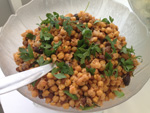 chickpeas, kalamata olives, raisins, onions, garlic, jalapenos, honey, cilantro, extra-virgin olive oil, fresh squeezed lime juice, sea salt & black pepper