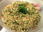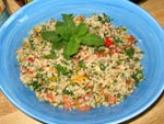 quinoa, tomatoes, cucumbers, parsley, red onion, red bell pepper, extra-virgin olive oil, lemon juice, sea salt & black pepper