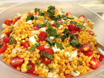 fresh tomatoes, corn, mozzarella tossed with extra-virgin olive oil, sea salt & black pepper garnished with fresh basil